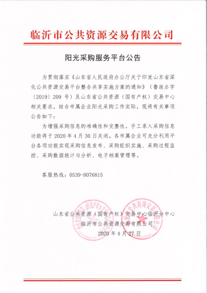 陽(yáng)光采購(gòu)服務(wù)平臺(tái)系統(tǒng)調(diào)整公告