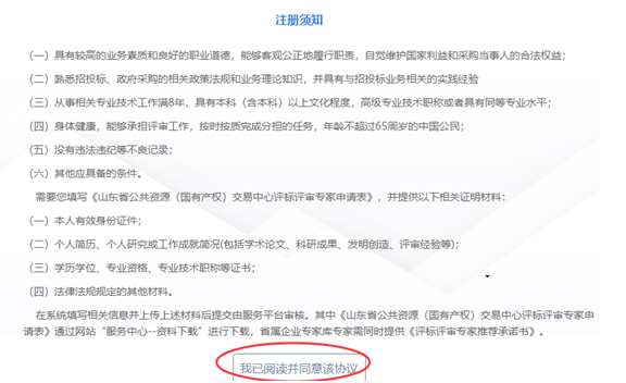 3. 閱讀專家注冊須知,確認(rèn)無誤后,點擊![]()