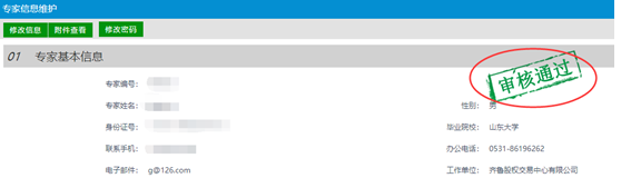 7.信息審核通過之后,頁面會有驗證通過字樣出現(xiàn)。到此專家注冊流程結(jié)束。